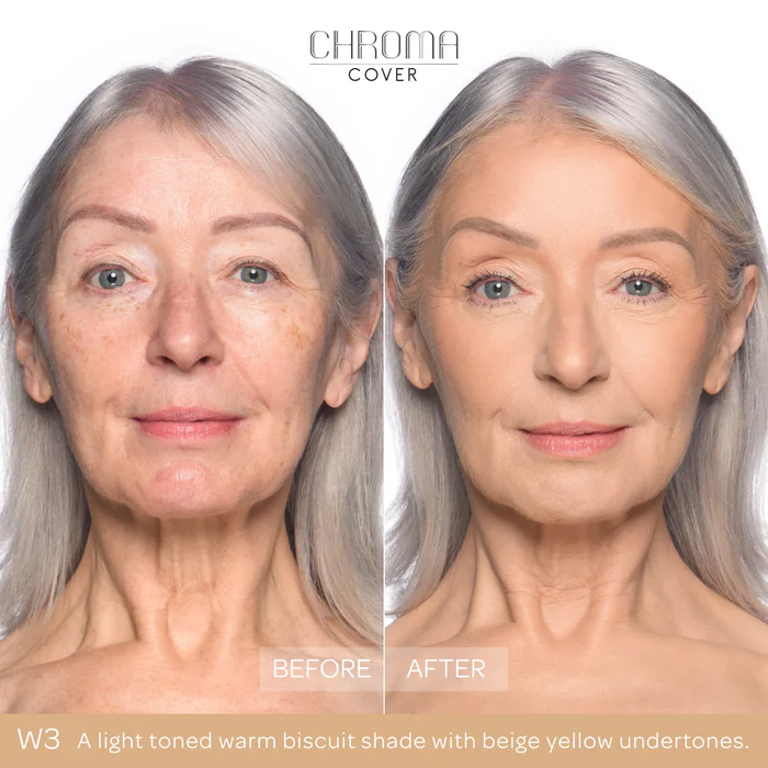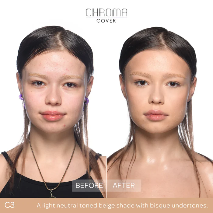 Náš oceňovaný Chroma Cover Matte Foundation je dostupný v 36 odtieňoch, s 3 rôznymi podtónmi – teplý, neutrálny a studený.